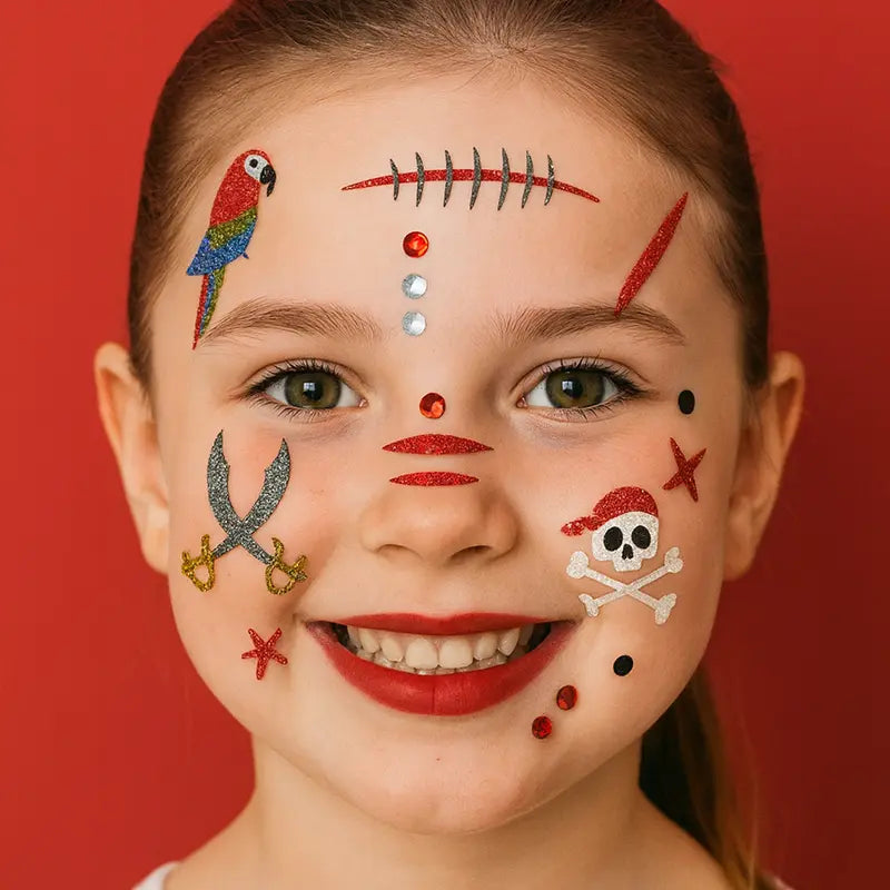 Schmetterlinge gehören zu den absoluten Klassikern beim Kinderschminken und lassen sich wunderbar mit Face Jewels und einem Glitzer Tattoo kombinieren. Mit nur wenigen Pinselstrichen entstehen farbenfrohe Flügel auf den Wangen, die durch glitzernde Akzente zum echten Hingucker werden. Auch Blumenmotive eignen sich perfekt für Anfänger – ein paar bunte Blütenblätter, ergänzt durch schimmernde Sticker, verwandeln jedes Kind in eine kleine Blumenfee.