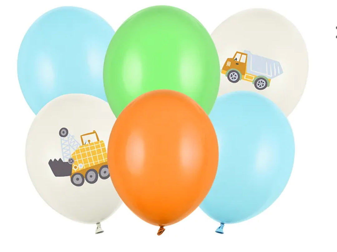Baustellenfahrzeuge Luftballons, 6er Pack, 30cm