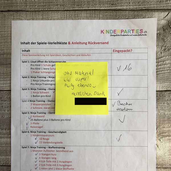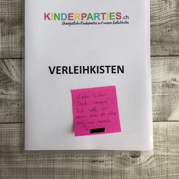 Vielen Dank für die tolle Party-Kiste. Es hat den Kindern riesen Spass gemacht und ich hatte nur strahlende Augen um mich rum. Ganz ganz tolle Idee und perfekte Umsetzung von euch! Danke viel mal!