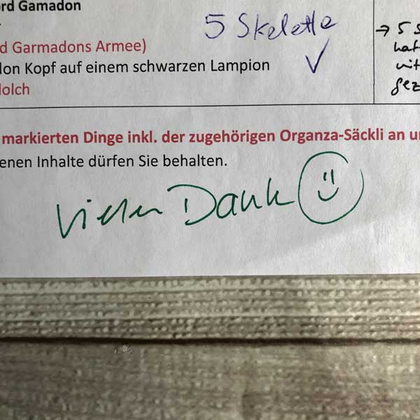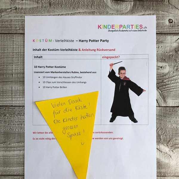 Liebe Frau Schnabel, Ihr Paket kam pünktlich bei uns an und die Party konnte mittlerweile steigen.Sie war wirklich ein grosser Erfolg. Die Kinder - und auch mein Mann und ich -waren begeistert von den Kostümen und auch den Spielen. Die 2 1\/2h vergingen wie im Fluge und am Ende waren alle glücklich :-)