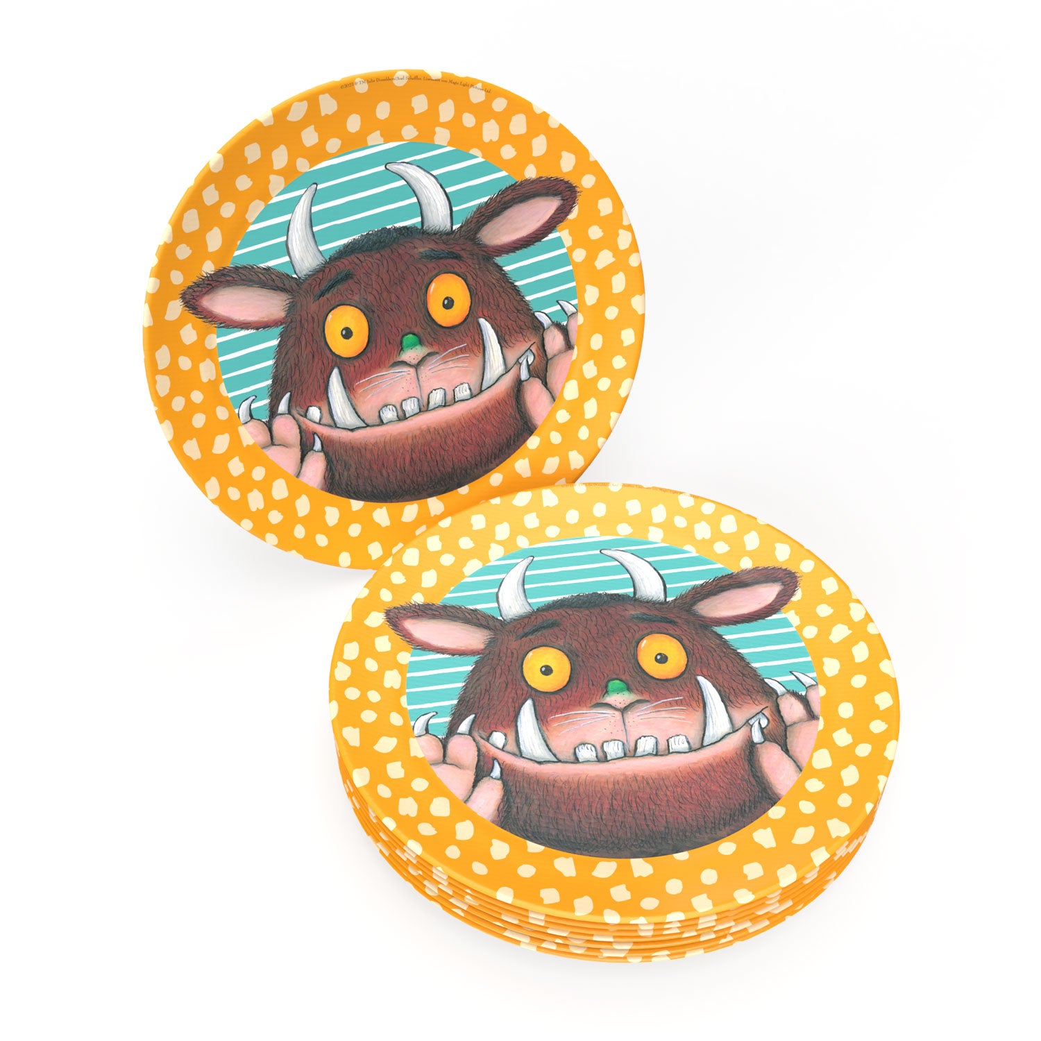 Stell Dir die leuchtenden Augen der kleinen Gäste vor, wenn sie den echten Grüffelo auf ihrem Teller entdecken. So macht das Essen auf der Party gleich doppelt Spass und jedes Kind fühlt sich wie auf einem Abenteuer im tiefen, dunklen Wald. Für Dich als Mama oder Papa ist die Vorbereitung ein Kinderspiel: Die Teller sind sofort einsatzbereit und zaubern eine stimmungsvolle Tischdekoration. Und das Beste: Nach der Party sparst Du Dir den Abwasch, denn die Pappteller können einfach entsorgt werden. So bleibt mehr Zeit für das Geburtstagskind.