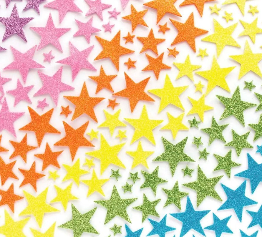 Autocollant scintillant étoile en mousse, diff. Variantes, autocollantes, 1,5 - 5cm