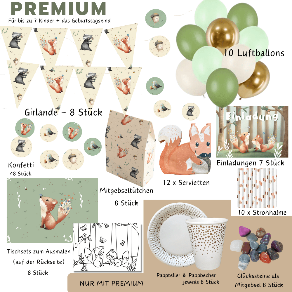 Stell Dir vor, die kleinen Gäste kommen an und tauchen sofort in eine Welt voller süsser Waldtiere ein. Jedes Kind bekommt eine Tiermaske und findet seinen liebevoll dekorierten Platz am Tisch. Mit dieser Mottobox schaffst Du im Handumdrehen eine stimmige Atmosphäre, die Kinderaugen leuchten lässt. Für Dich bedeutet das: kein langes Suchen nach passenden Einzelteilen mehr. Alles, was Du für eine gelungene Feier brauchst, ist bereits harmonisch aufeinander abgestimmt und in einer einzigen Box verpackt. Das spart Dir wertvolle Zeit bei der Vorbereitung und gibt Dir die Sicherheit, dass alles perfekt zusammenpasst.