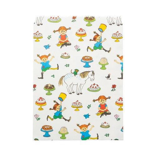 Tu recevras huit sacs en papier robustes, imprimés avec les illustrations originales d'Ingrid Vang Nyman. Outre Pippi, son cheval Petit Oncle et le petit singe Monsieur Nilsson sont également présents sur les sacs. D'une taille d'environ 16,5 x 23 cm, ils offrent suffisamment de place pour des sucreries, des petits jouets ou des pièces d'or. Le papier est solide et permet de transporter les surprises à la maison en toute sécurité.