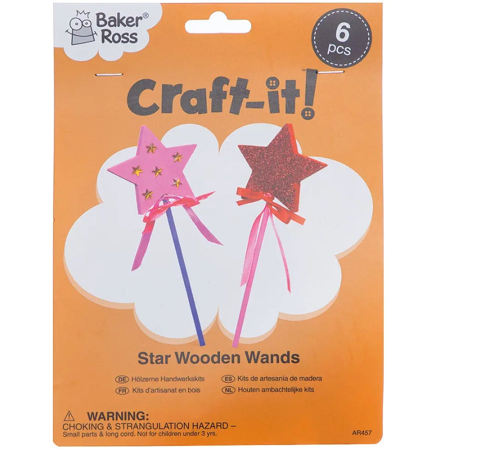 Dieses Set enthält alles, was Du für sechs angehende Magierinnen und Magier benötigst: sechs Holzsterne, sechs Holzstäbe und die passenden Satinbänder. Die fertigen Zauberstäbe haben eine Länge von circa 20 cm und liegen gut in kleinen Kinderhänden. Das unbehandelte Holz lässt sich kinderleicht mit Acrylfarben, Filzstiften oder Kleber und Glitzer verzieren. Da Farben und Deko nicht enthalten sind, kannst Du genau die Materialien bereitstellen, die zum Alter der Kinder und zu Deinem Motto passen.