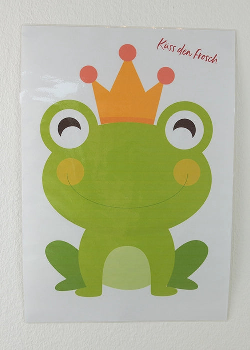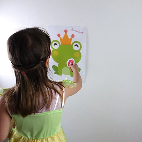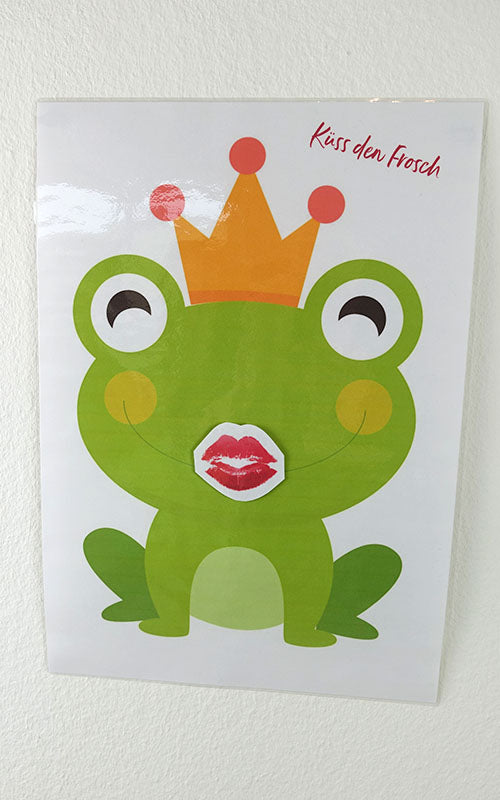 Entweder könnt Ihr den Kindern die Lippen rot schminken und sie den Frosch dann in echt küssen lassen...