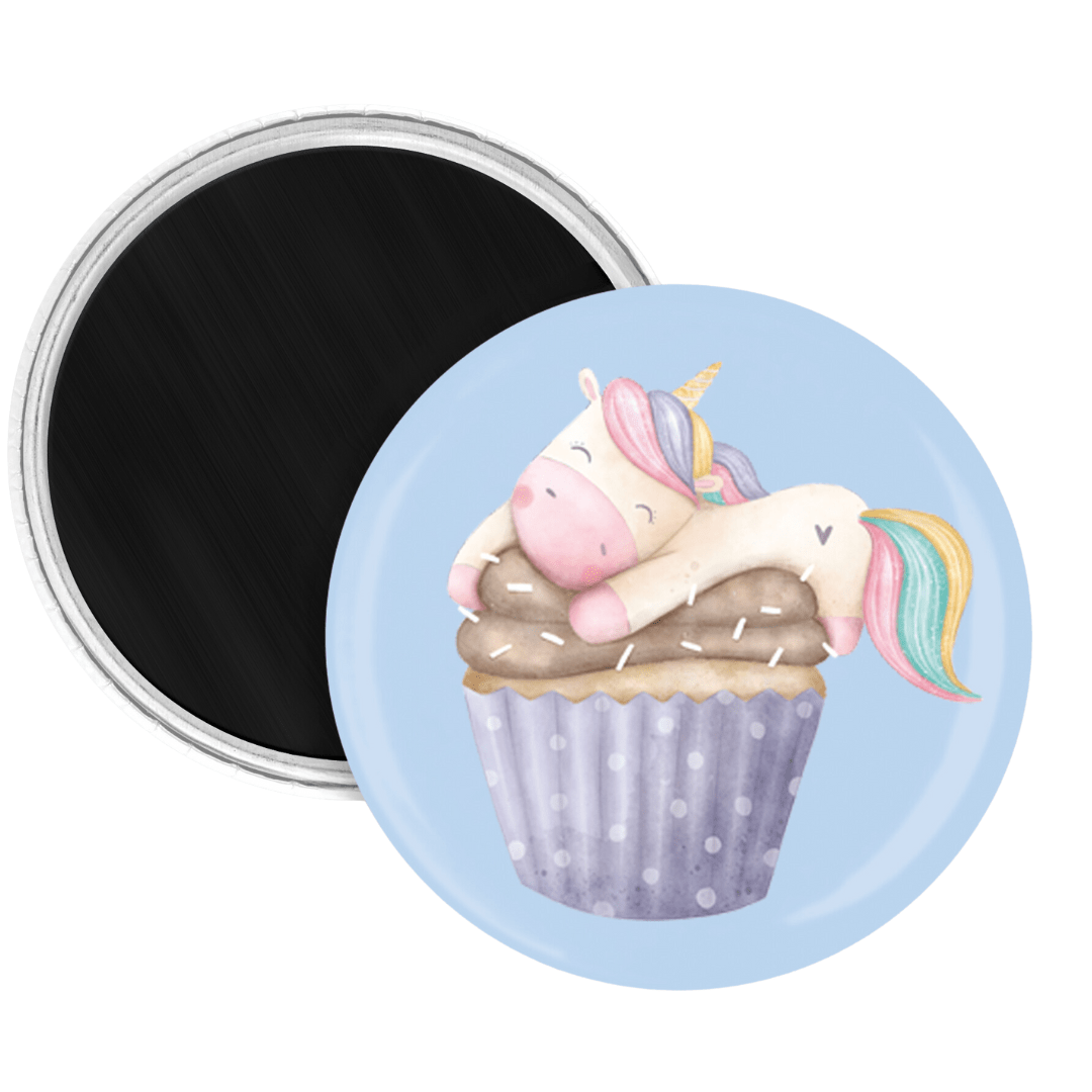 In jeder Packung erhältst Du acht stabile Magnete mit einem Durchmesser von 56 mm. Das niedliche Motiv des schlafenden Einhorns auf einem Cupcake ist liebevoll gestaltet und klar auf die Vorderseite gedruckt. Dank der vollflächigen magnetischen Rückseite haften die Buttons sicher auf allen metallischen Oberflächen. Sie sind robust genug für kleine Kinderhände und ein schönes, praktisches Accessoire für das Kinderzimmer, das den Partytrubel überdauert.