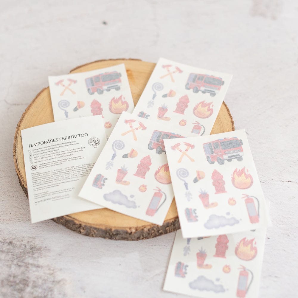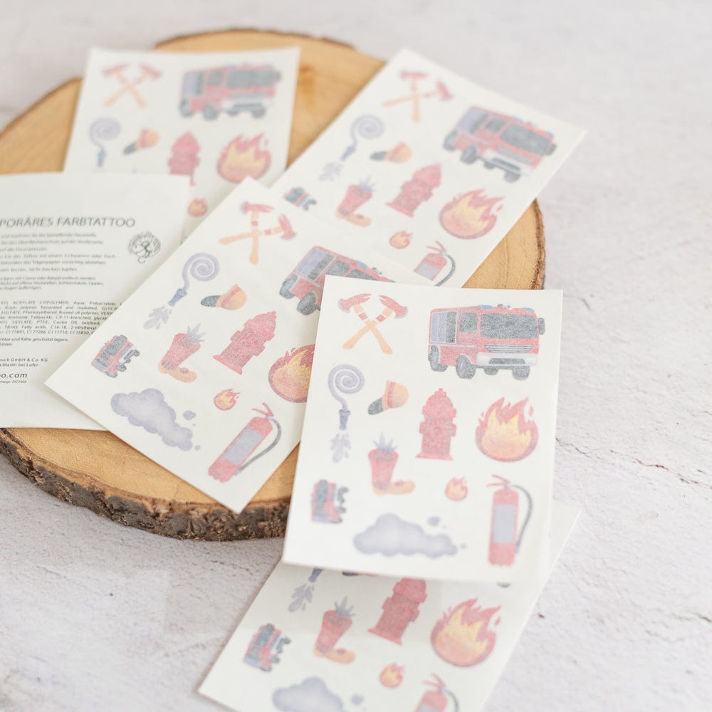 Stell Dir vor, wie die kleinen Partygäste aufgeregt ihr Lieblingsmotiv aussuchen: das grosse Feuerwehrauto, die lodernde Flamme oder die Axt. Jeder kann sein Tattoo ganz einfach selbst auf den Arm bringen und es stolz präsentieren. Für Dich bedeutet das eine unkomplizierte und saubere Beschäftigung, die für leuchtende Kinderaugen sorgt. Ob als Highlight in der Mitgebseltüte oder als ruhige Aktivität zwischendurch - diese Tattoos sind immer ein Volltreffer.