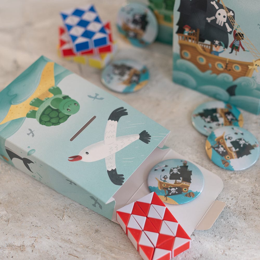 Dieses Set enthält acht runde Magnete, jeder mit einem Durchmesser von 50 mm. Die Vorderseite zeigt ein liebevoll gestaltetes Piratenmotiv, während die vollflächig magnetische Rückseite für einen starken und sicheren Halt auf allen metallischen Oberflächen sorgt. Die Magnete sind robust verarbeitet und halten auch kleinen Kinderhänden stand. Sie sind die perfekte Ergänzung für jede Piraten-Mottoparty, sei es als Gewinn bei einem Spiel oder als kleines Dankeschön für die Gäste.