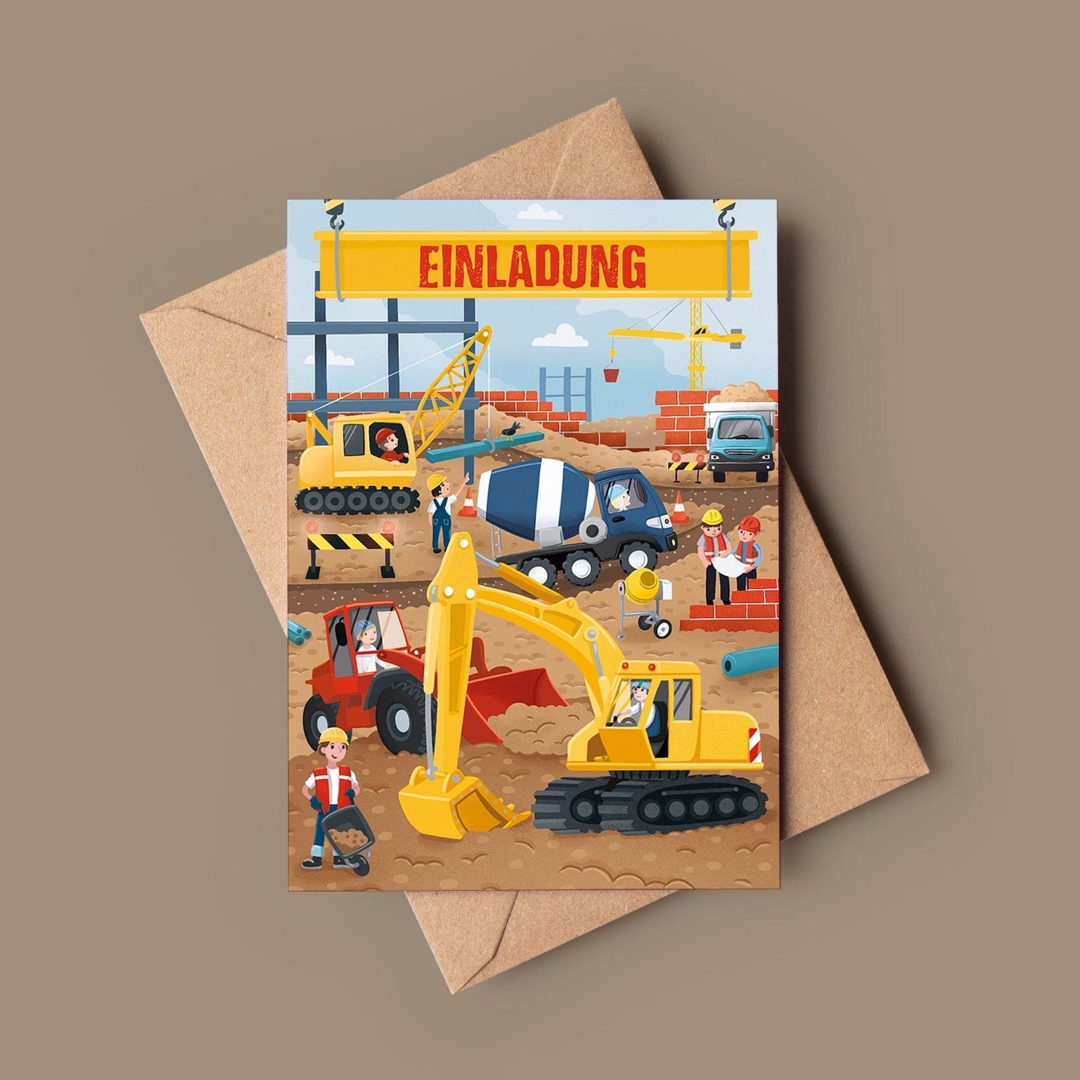 Diese Einladungen geben den perfekten Ton für eine Mottoparty rund um Baustelle, Bagger und Bauarbeiter vor. Kombiniere sie mit gelb-schwarzer Deko, kleinen Bauhelmen als Mitgebsel und einem Sandkuchen, der wie eine Baustelle dekoriert ist. Die Karten sind der erste Baustein für einen unvergesslichen Kindergeburtstag, an dem die kleinen Gäste nach Herzenslust buddeln, bauen und Spass haben können.