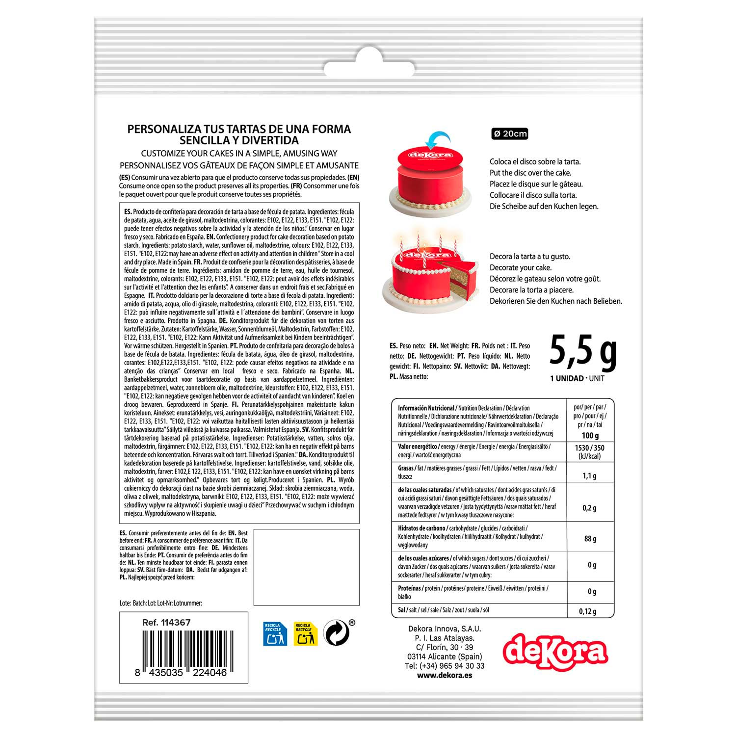 Der runde Tortenaufleger hat einen Durchmesser von 20 cm und passt damit auf die meisten Standard-Torten und Kuchen. Er besteht aus flexiblem Esspapier, das sich leicht auf glatten Oberflächen wie Fondant, Marzipan oder Schokoladenglasur anbringen lässt. Bei Sahne- oder Cremetorten empfehlen wir, den Aufleger erst kurz vor dem Anschneiden aufzulegen, damit er seine Form behält. Der farbintensive Druck ist lebensmittelecht und sorgt für ein tolles Bild, das bis zum letzten Krümel Spass macht.