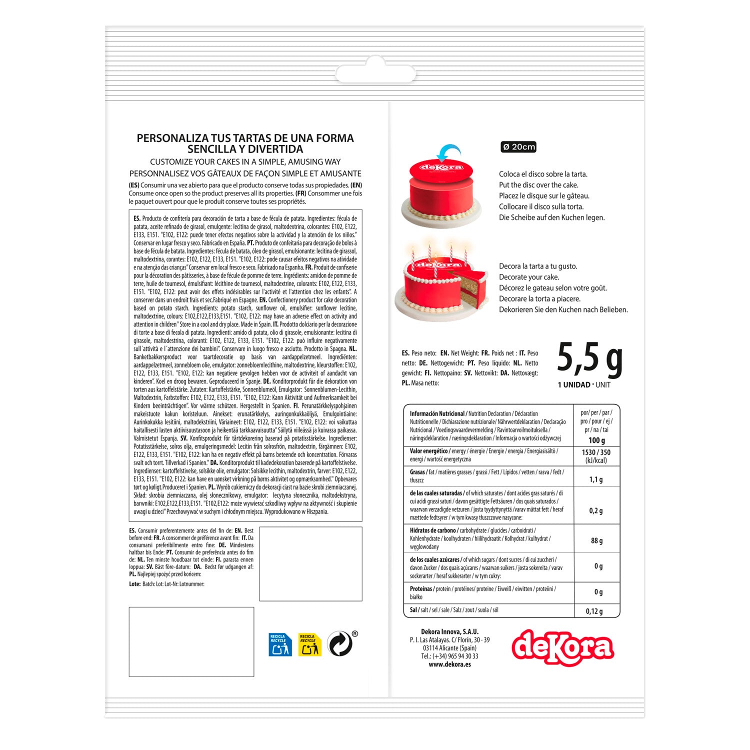 Der runde Tortenaufleger hat einen Durchmesser von 20 cm und passt damit auf die meisten handelsüblichen Torten und Kuchen. Er besteht aus essbarem Oblatenpapier und ist geschmacksneutral, sodass der Geschmack Deiner Torte im Vordergrund bleibt. Gedruckt mit Lebensmittelfarben, zeigt er die beliebten Charaktere in brillanten Farben. Als besonderes Plus für kleine Gäste mit Unverträglichkeiten ist der Aufleger glutenfrei und laktosefrei.